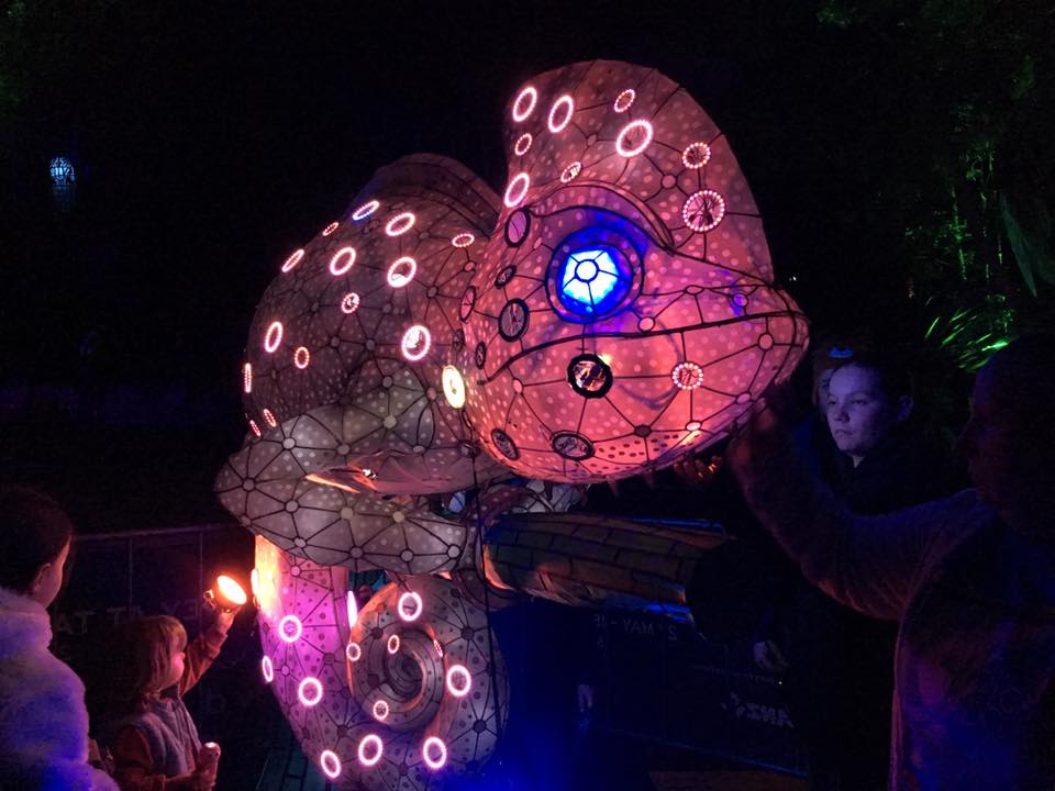 Of course, there view out across the harbour is mesmerising and the team at Taronga have made sure to plan the path along a trail that has almost continued glimpses of Vivid Sydney in the city. At every installation you will find a Taronga staff member who can answer your kids questions about the featured animal. They’ll also help describe what to do if the installation is interactive. Better yet, there are moments along the track where you’ll wonder which was to go and voila one of the Taronga team will appear from the dark to help. They’re THAT good!